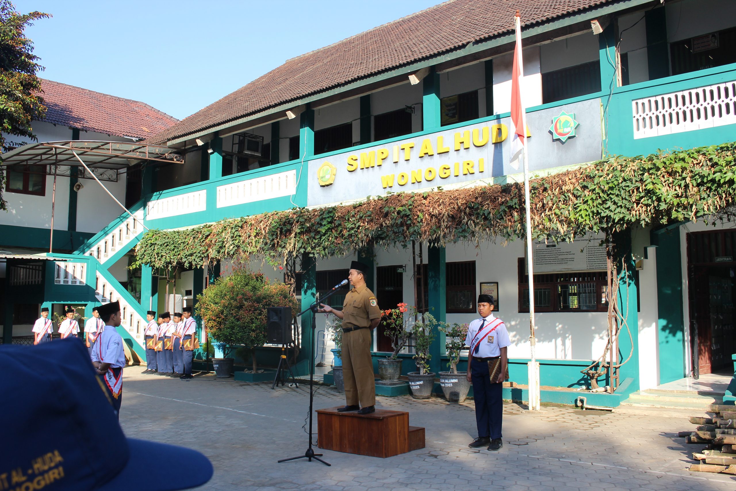 Wonogiri- Senin, 31 Juli 2023 SMPIT Al Huda Wonogiri laksanakan upacara bendera merah putih di Lapangan Gedung Indonesia.