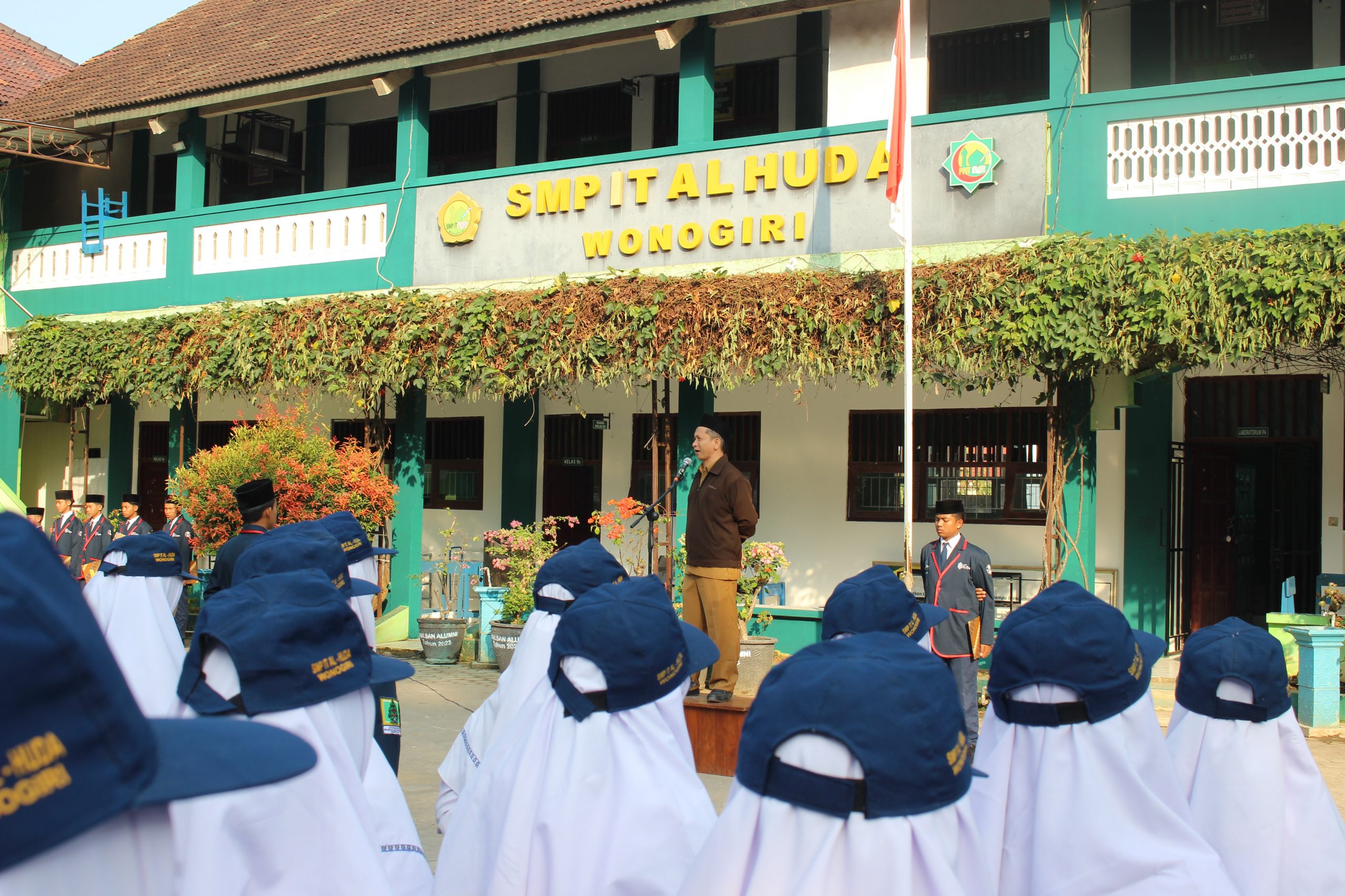 Wonogiri- Senin, 24 Juli 2023 SMPIT Al Huda Wonogiri laksanakan upacara bendera merah putih di Lapangan Gedung Indonesia.