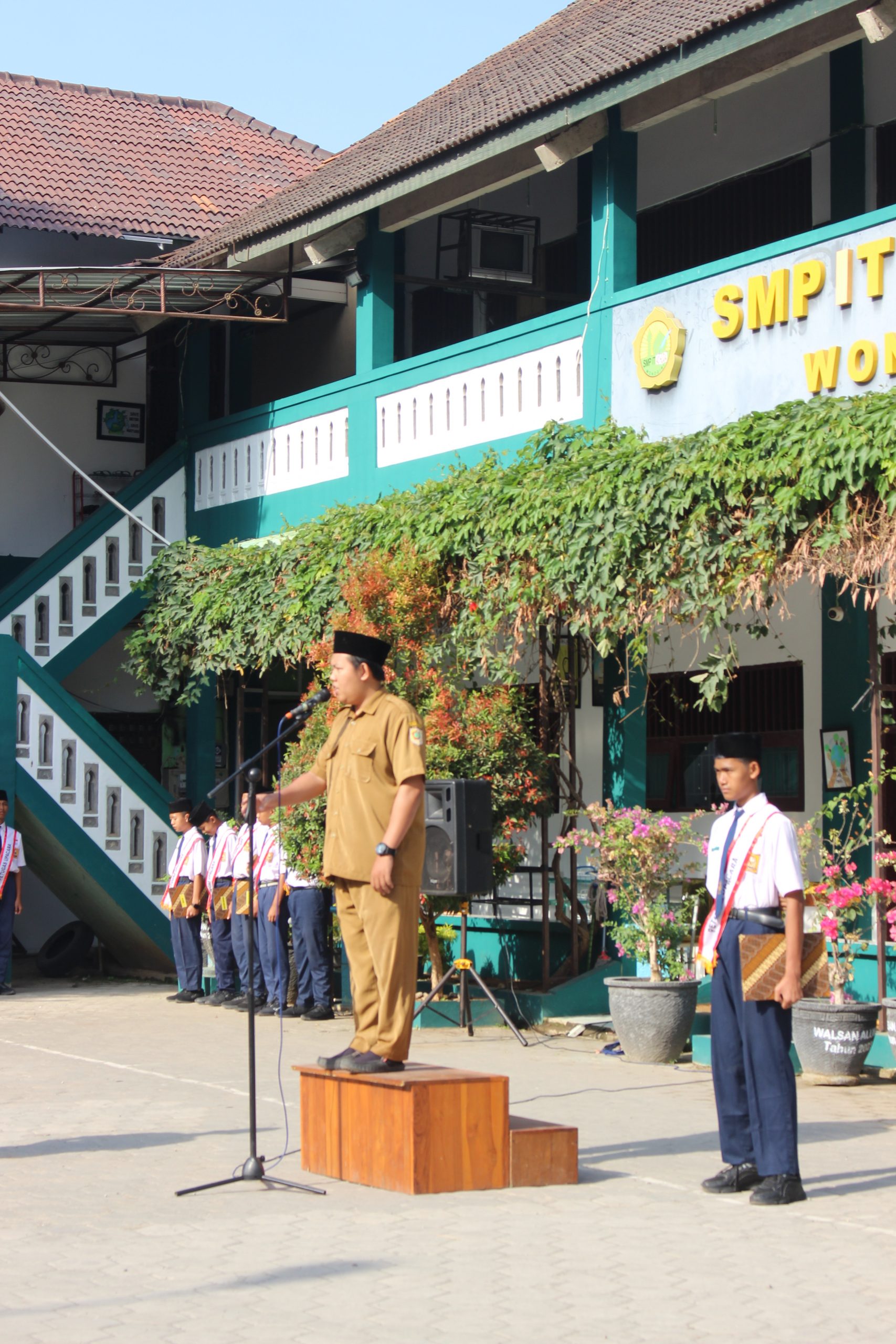 Wonogiri- Senin, 16 Oktober 2023 SMPIT Al Huda Wonogiri laksanakan upacara bendera merah putih di Lapangan Gedung Indonesia.