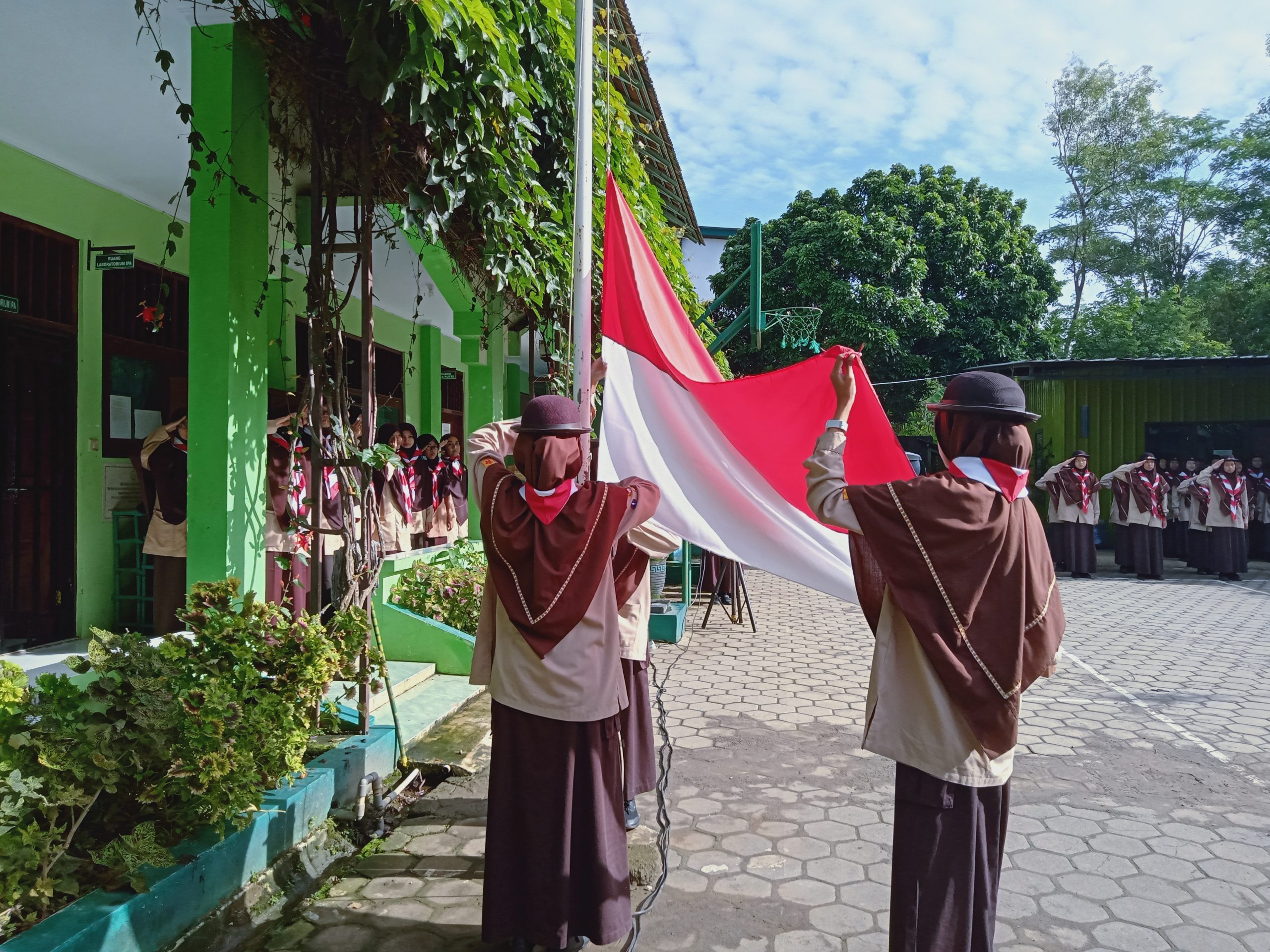 Pada hari ini pemimpin upacaranya Ghifari. Pemimpin pasukan berjumlah 6. Pasukan kelas 7 siswi dipimpin oleh Nimas, pasukan kelas 8 siswi dipimpin oleh Fadilah, pasukan kelas 9 siswi dipimpin oleh Mutiara, pasukan kelas 7 siswa dipimpin oleh Abimanyu, pasukan kelas 8 siswa dipimpin oleh Zuqni, dan pasukan kelas 9 siswa dipimpin oleh Ali. Ajudan atau pembawa Pancasila dibawakan oleh Naufal, pembaca susunan acara upacara dibacakan oleh Hasna Shabirah. Tasmi’ Al-Qur’an dibacakan oleh Lintang, Undang-Undang Dasar dibacakan oleh Sahasika, Janji Pelajar Islam dibacakan oleh Izzah, doa dibacakan oleh Naazneen, dan 3 pengibar bendera yang dikibarkan oleh Elkana, Adelia dan Fariha.